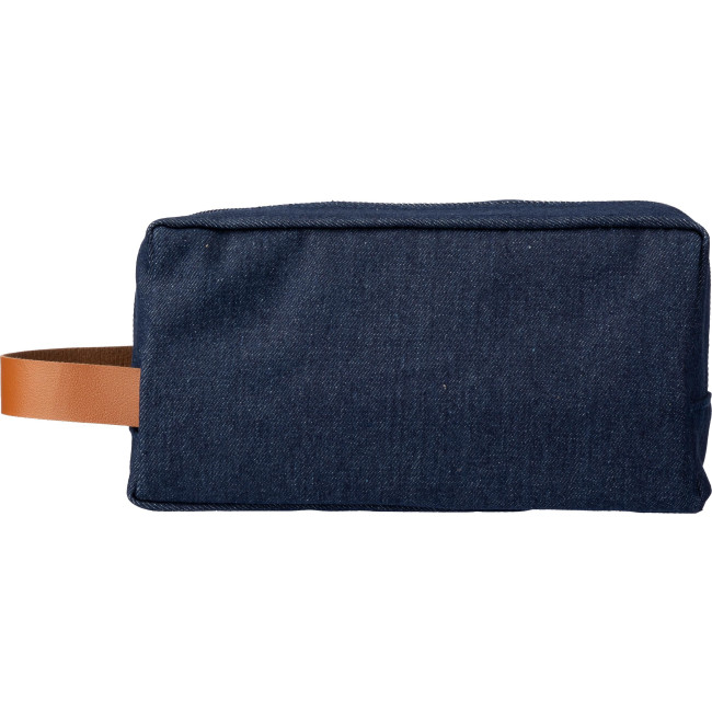 Beauty case in Denim (Jeans), dettagli in PU, chiusura lampo, manici corti per il trasporto