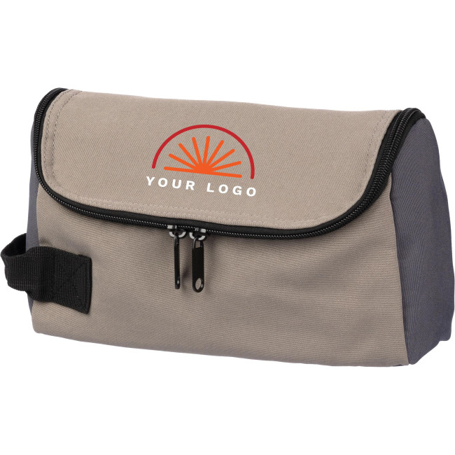 Beauty case in poliestere 600 D (imitazione cotone), fodera in PU 210 D, ampio scomparto sulla parte superiore con chiusura lampo, tracolla corta