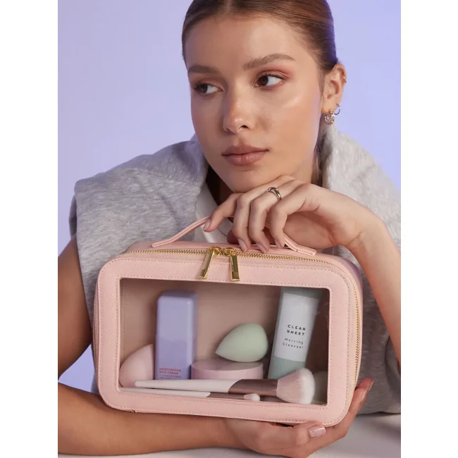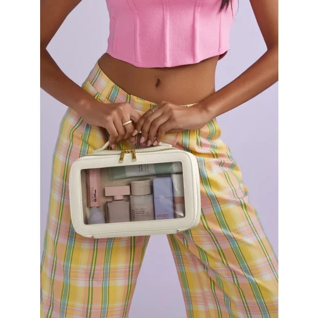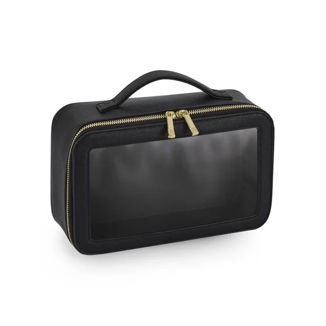 Beauty Case trasparente in poliuretano effetto pelle con zip e pannello trasparente