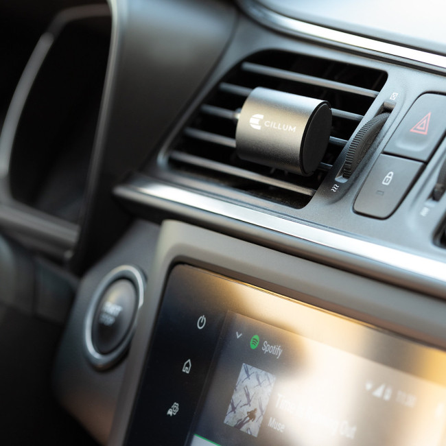 Deodorante per griglia auto dal design elegante. Con frontale scorrevole in alluminio granulato e robusta clip per griglia. Con perle di profumo al limone e disponibile nelle finiture argento e nero.