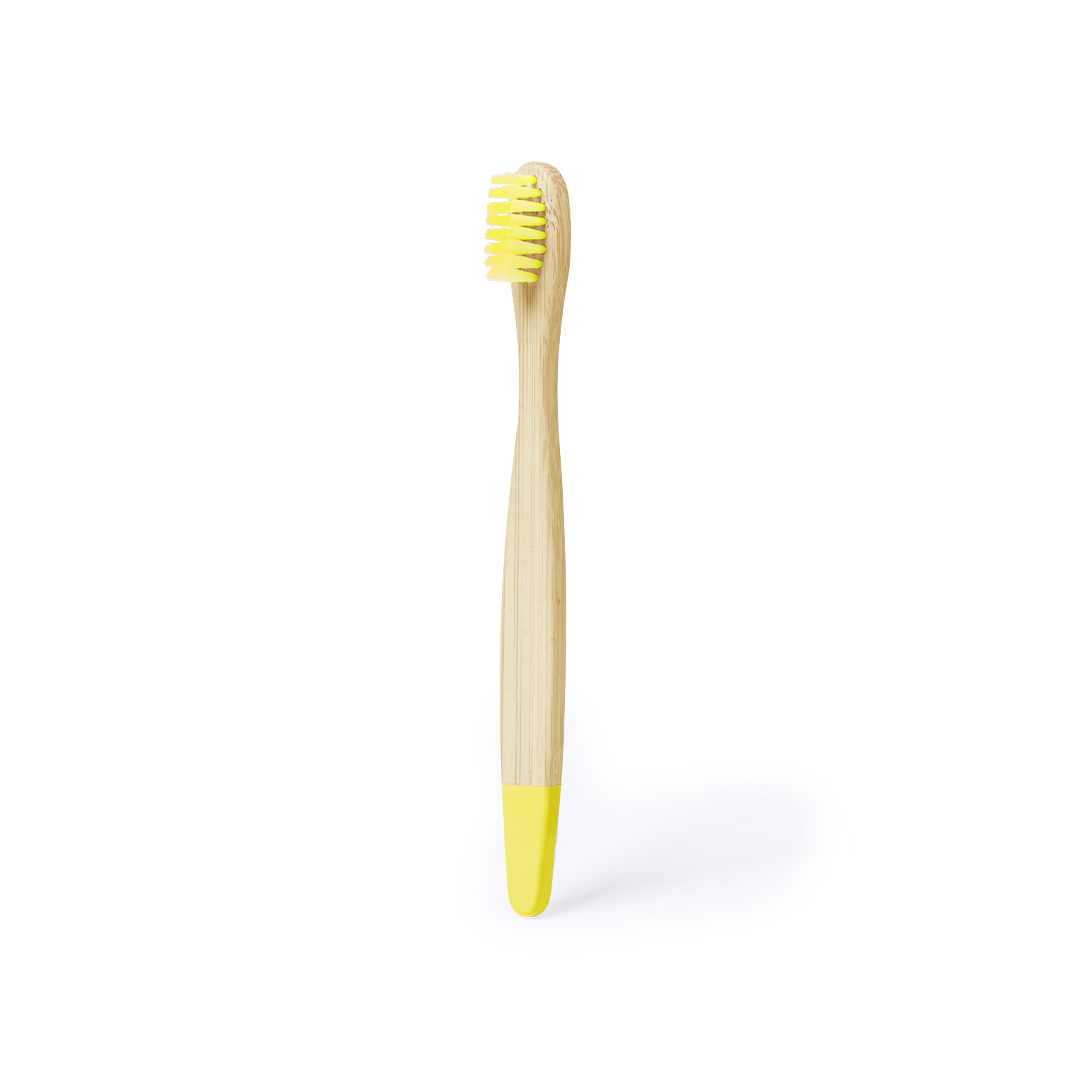 Spazzolino da denti in bambù. Per i più piccoli di casa, con setole e punte in colori divertenti. Presentato singolarmente in una scatola kraft. Materiali come il bambù favoriscono l'utilizzo di materie prime naturali, riducendo le emissioni inquinanti. Proviene da una pianta altamente resistente e versatile, con una rapida crescita e rigenerazione, rappresentando un'ottima alternativa all'uso del legno tradizionale