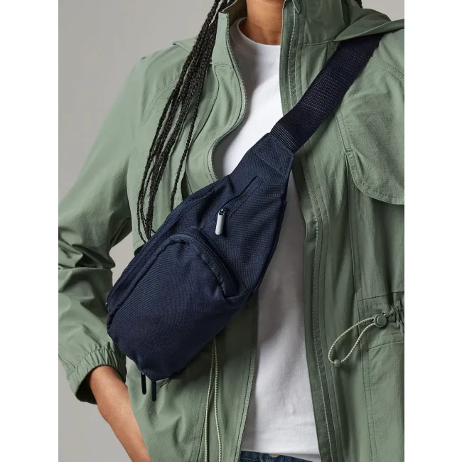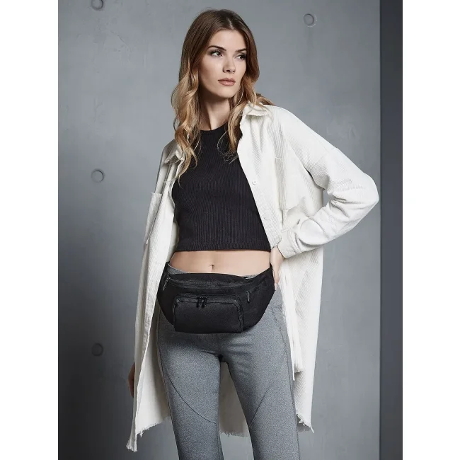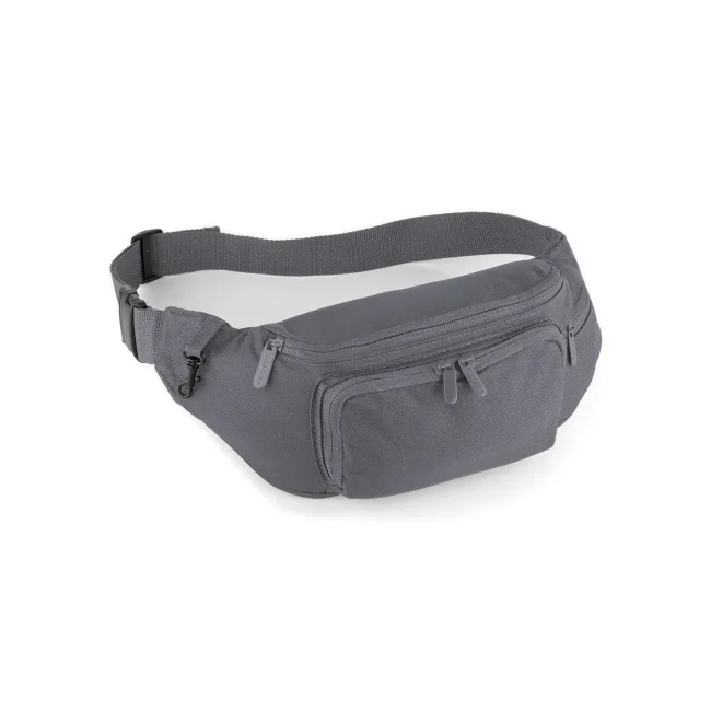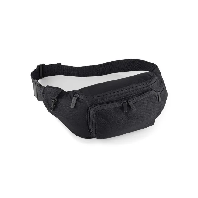 100% Poliestere 600D. Marsupio multitasca con zip, cinturino regolabile, moschettone per chiavi. Etichetta removibile. Dimensioni: 37 x 15 x 10 cm. Capacità: 2 litri.