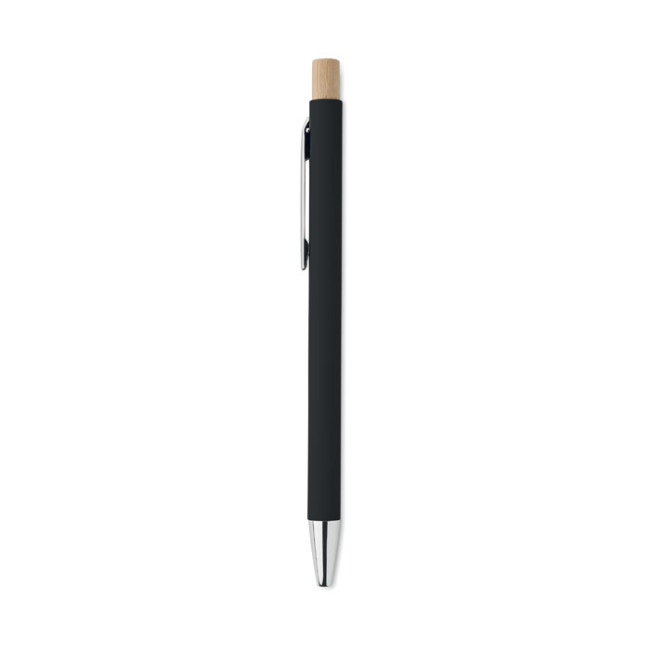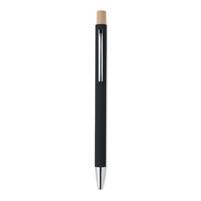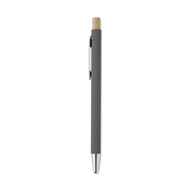 Penna push ball in alluminio riciclato. Punta e clip argentate. Inchiostro blu.