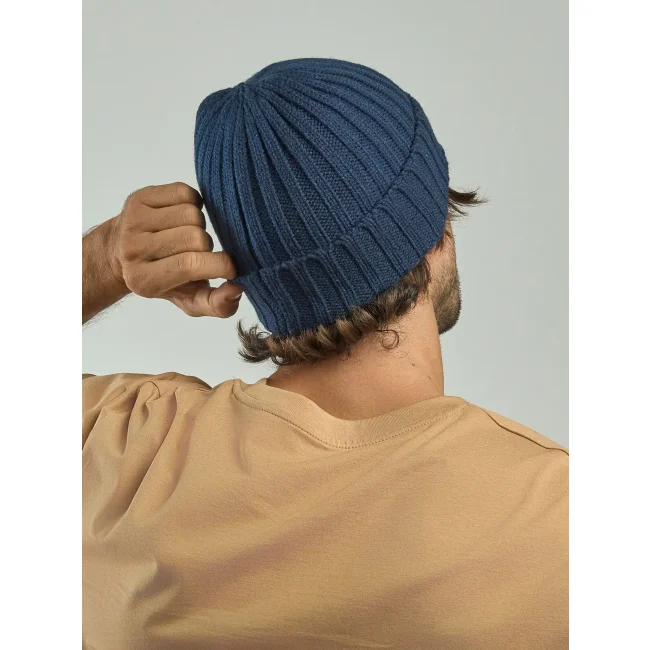 Berretta Shore realizzata in poliestere riciclato al 100%, progettata per un comfort ottimale. Presenta un'etichetta removibile e una composizione in fase di aggiornamento per ridurre l'impatto ambientale. La beretta è ideale per personalizzazioni e utilizzo quotidiano.