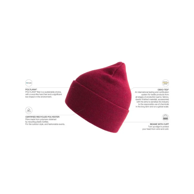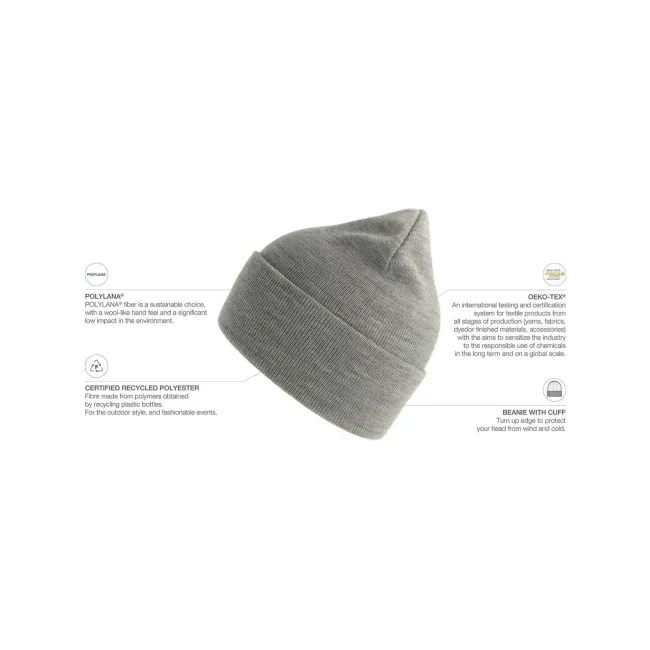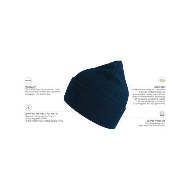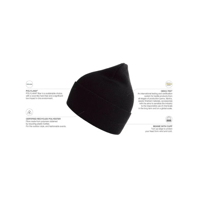 La berretta Pure è realizzata in Polylana® 100%, un materiale innovativo che riduce l'impatto ambientale. Presenta un design a doppio strato e un'etichetta removibile. La composizione è in fase di aggiornamento per garantire sostenibilità e comfort.