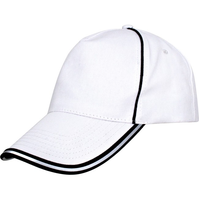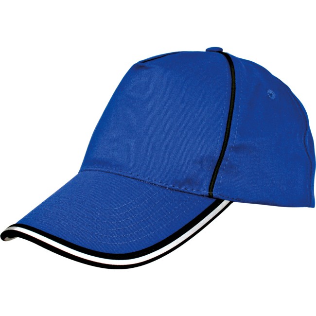Berrettino in cotone 100% leggero, 5 pannelli, particolari neri e catarinfrangenti. Taglia unica.
