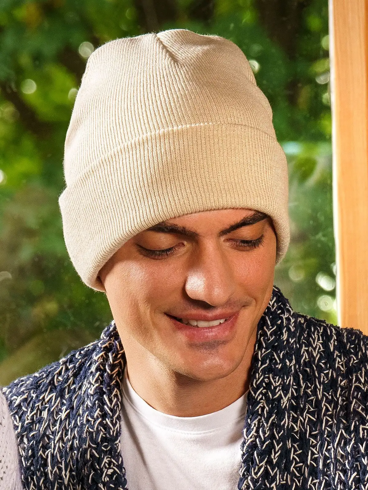 Berretto classico realizzato in poliestere riciclato, dotato di polsino per una vestibilità comoda. La finitura a macchina circolare e il doppio strato garantiscono una sensazione morbida al tatto, rendendolo ideale per l'uso quotidiano. Etichetta removibile per personalizzazioni.