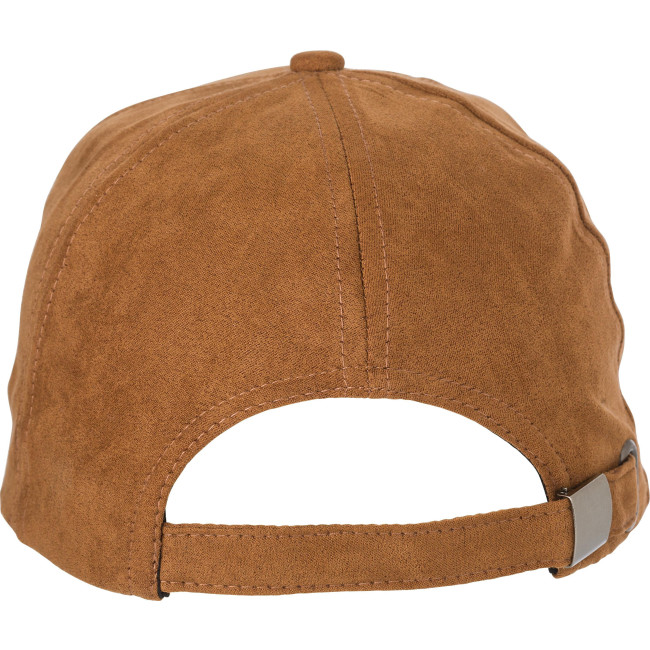 Berretto in pelle scamosciata, sei pannelli, chiusura con fibbia in metallo sul retro, fori sul fronte del pannello lato superiore
