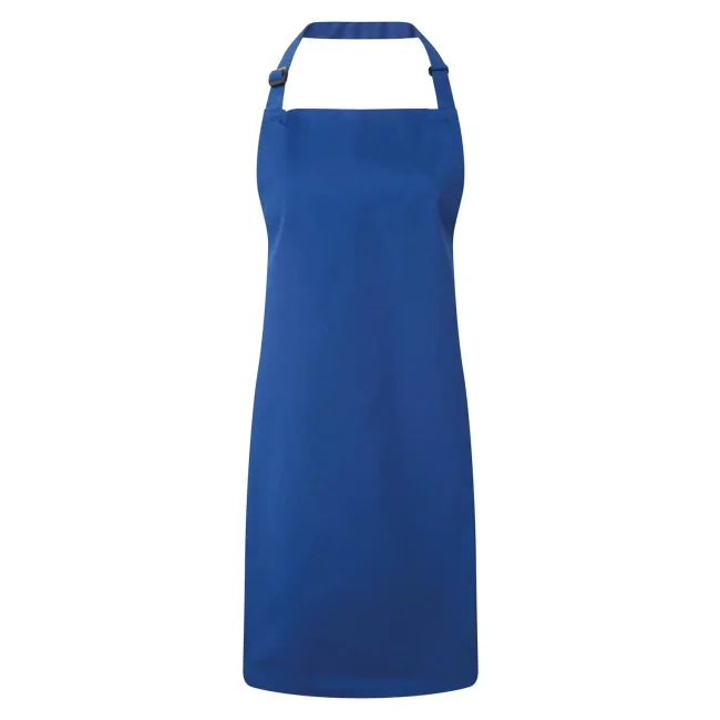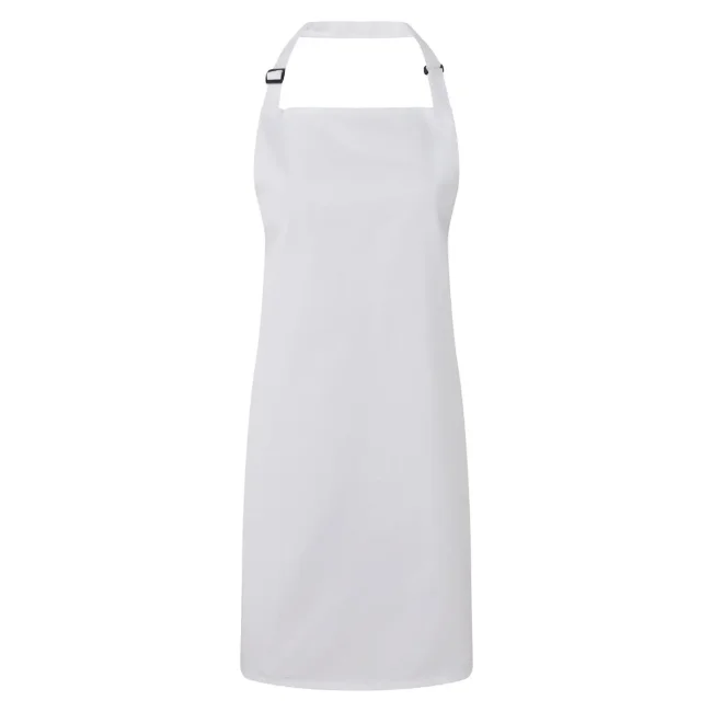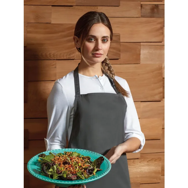 65% poliestere, 35% cotone. Grembiule con pettorina e lacci contrastanti regolabili con fibbia al collo. Tessuto con tecnologia antimicrobica HeiQ Viroblock. Lavabile a 60°C.