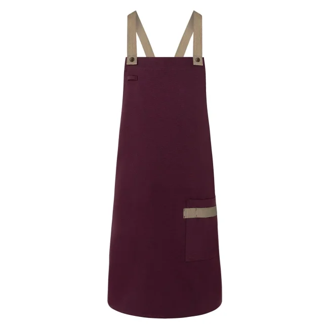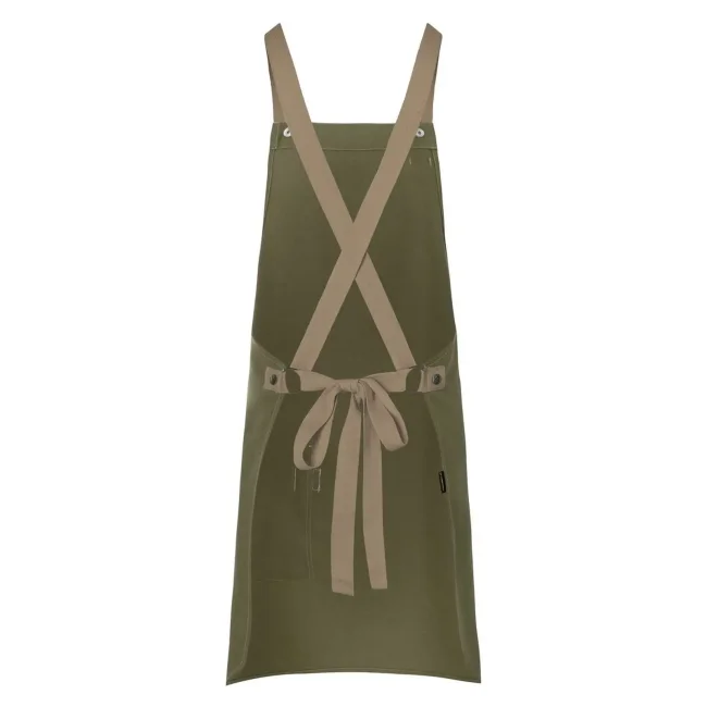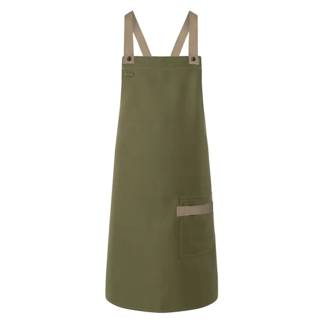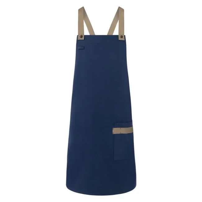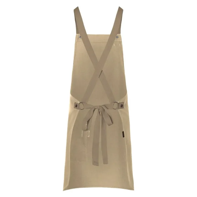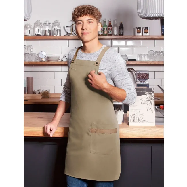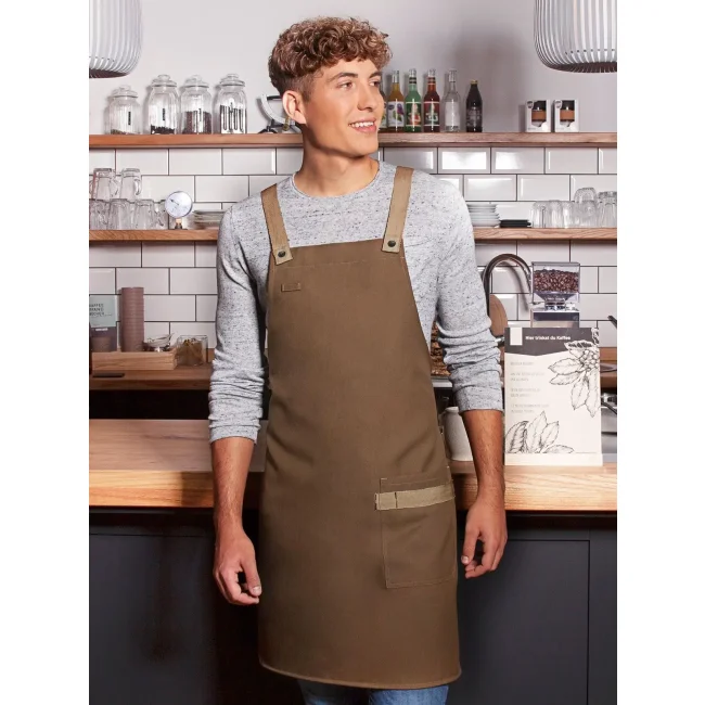 65% poliestere, 35% cotone. Grembiule con pettorina e cinturini rimovibili e a contrasto, moderna combinazione di stile elegante e street wear, cinturini a contrasto in stile naturale, tutti i cinturini sono facilmente rimovibili e applicabili grazie ai bottoni a pressione, entrambi i cinturini del grembiule vengono indossati sulle spalle, alleggerendo così l'area cervicale, chiusura funzionale: incrociare i cinturini sul retro, poi inserire nelle fibbie e annodare (regolazione flessibile in lunghezza e altezza), angoli moderni e obliqui alle estremità del grembiule, passante per penna a livello del petto, tasca sul lato sinistro (19 x 21 cm) con passante a contrasto per fissare penne, canovacci o altri. Lavaggio a 60°C.