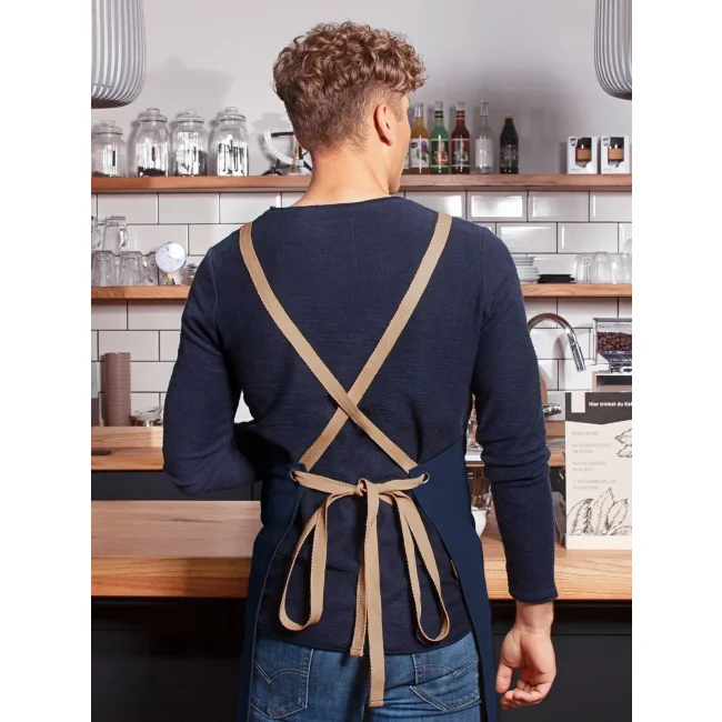 65% poliestere, 35% cotone. Grembiule con pettorina e cinturini rimovibili e a contrasto, caratteristiche uniche di eleganza classica e stile urban, la particolarità è costituita dalle bretelle incrociate con stile naturale, entrambi i cinturini del grembiule vengono indossati sulle spalle, alleggerendo così l'area cervicale, chiusura funzionale: incrociare i cinturini sul retro, poi inserire nelle fibbie e annodare (regolazione flessibile in lunghezza e altezza), entrambi i cinturini sono facilmente rimovibili e possono essere lavati separatamente, tasca centrale applicata, incl.: 1 grande scomparto centrale (39 x 20 cm), 2 porta penna laterali e 1 piccola tasca applicata (17 x 11 cm). Lavaggio 60°C.
