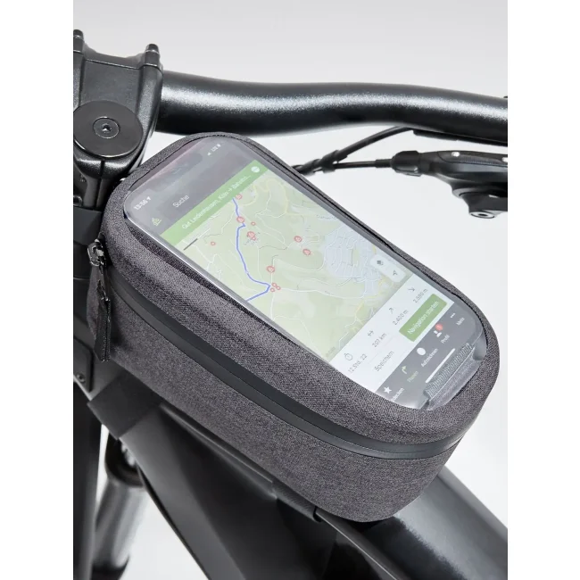 100% Poliestere 600D. Scomparto principale con tasca per cellulare regolabile e film di protezione trasparente per il comando touch screen, chiusura lampo idrorepellente. Cuciture saldate per una protezione ottimale da pioggia e umidità, montaggio con chiusure con velcro ben aderenti, regolabili individualmente e removibili, fondo imbottito.