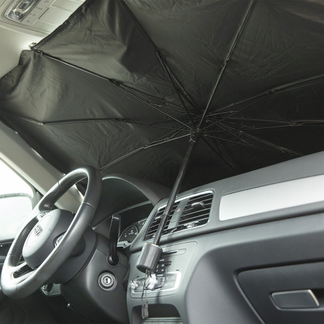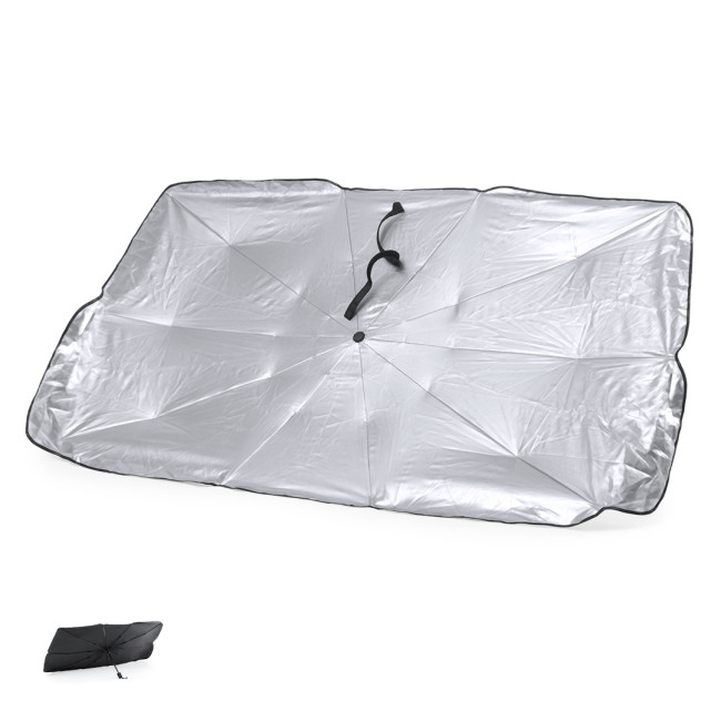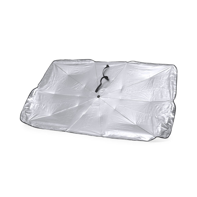 Parasole per auto pieghevole. Dimensione 140x78cm. Con meccanismo di apertura manuale e copertura in poliestere inclusa.