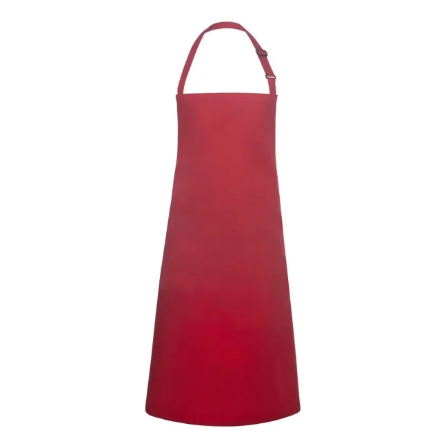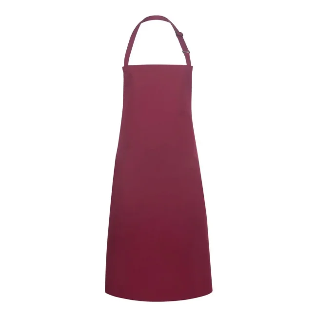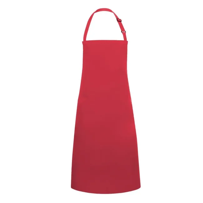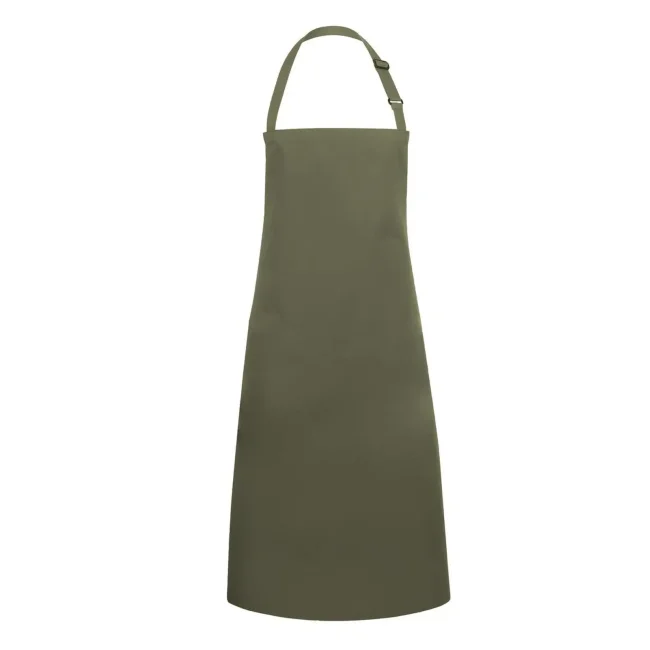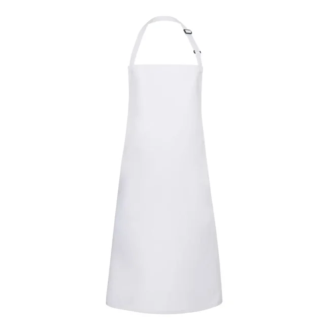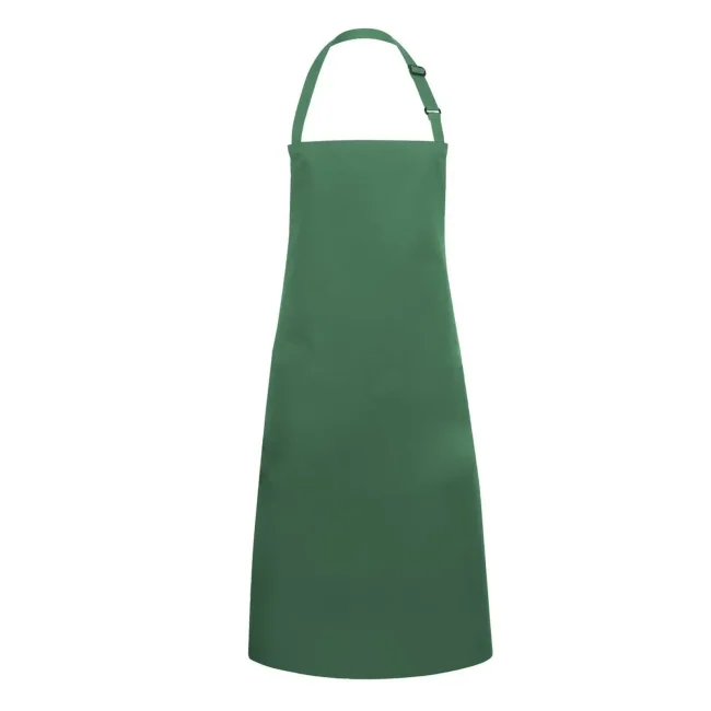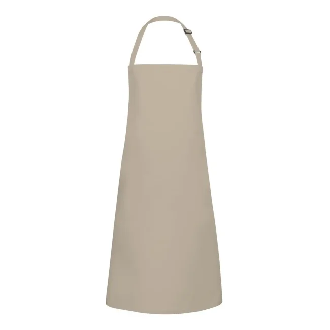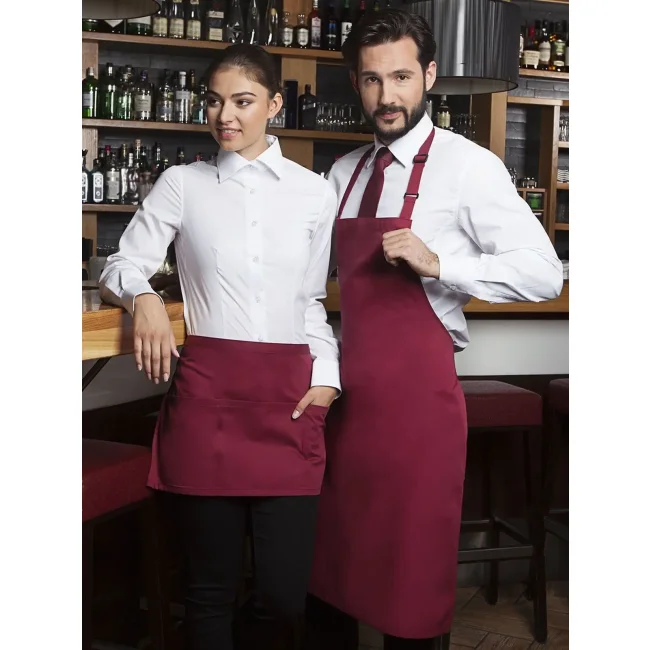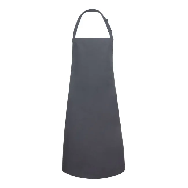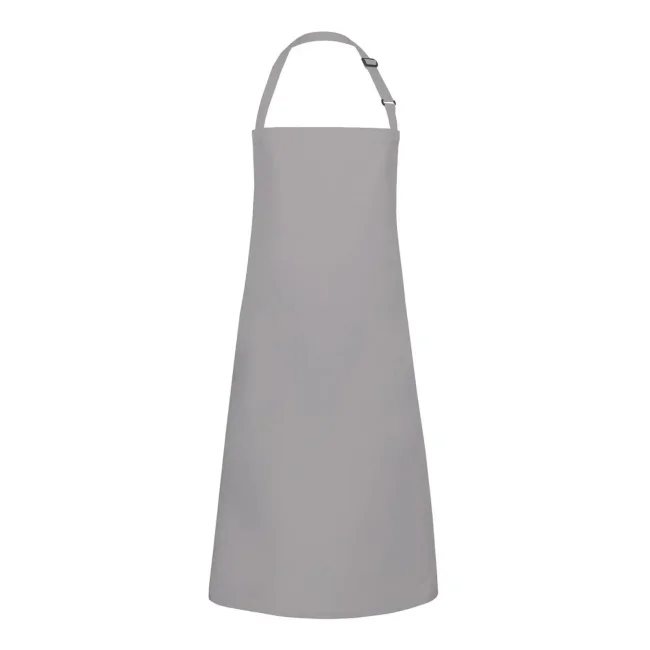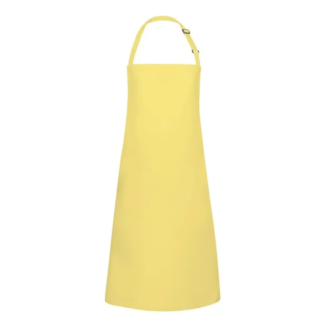 65% poliestere, 35% cotone. Grembiule con pettorina e lacci dello stesso tessuto, cucitura rinforzata, laccio della pettorina con fibbia per regolazione continua della lunghezza fino a 70 cm. Lavaggio a 60°C. Misura 75x90cm.