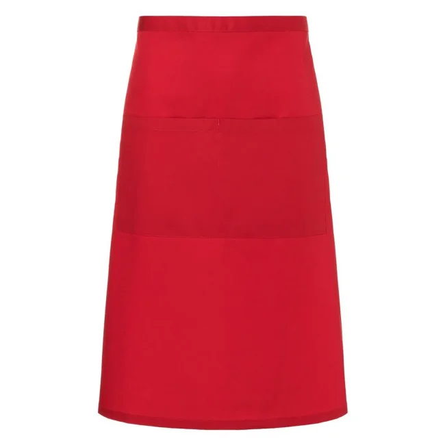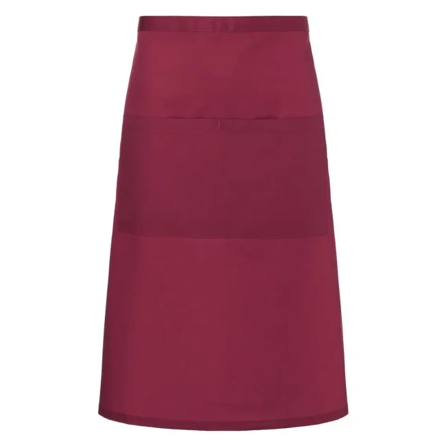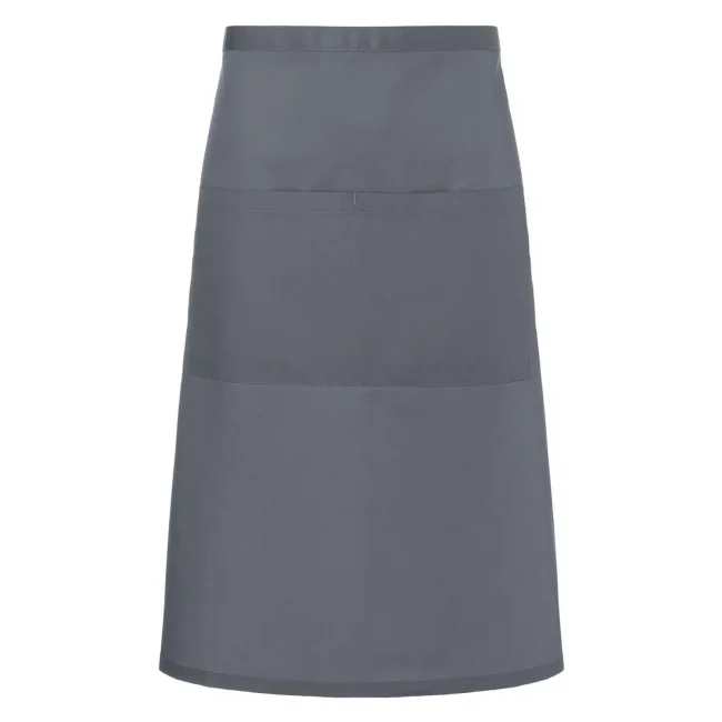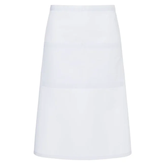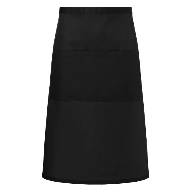 65% poliestere, 35% cotone. 215 g/m². Grembiule bistrò classico e funzionale con cinta continua in stoffa - ulteriore resistenza garantita dalla cucitura di rinforzo sulle cinte del grembiule - tasca applicata (40 x 20 cm) con 2 pratici scomparti. Dimensioni: 70 x 70 cm. Lavabile a 60°C.