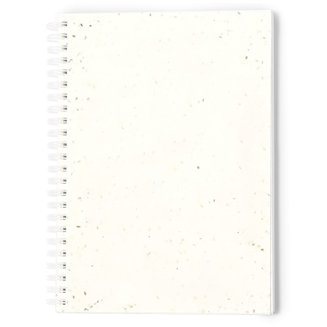 Taccuino con raccoglitore ad anelli e copertina morbida in carta di semi. Con 80 fogli bianchi lisci. Le copertine includono semi di petunia, rendendo la carta piantabile alla fine della sua vita utile. Include istruzioni per la semina sul retro della copertina e viene fornito in un sacchetto individuale di carta riciclata.