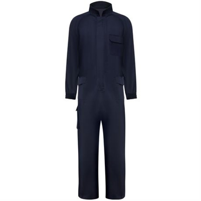 Tuta dritta in tessuto ignifugo.· Abbottonatura centrale con chiusura a zip e velcro.· Una tasca sul petto sinistra con patta e chiusura in velcro.· Due tasche laterali con patella e chiusura in velcro.· Una tasca laterale con chiusura a soffietto, patta e velcro.· Polsini regolabili con elastico.· Tasca posteriore con patta e velcro