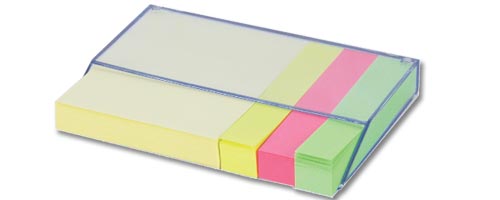 Blocchetti adesivi base in plastica trasparente. Confezione in nylon.