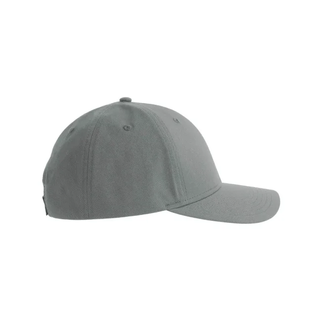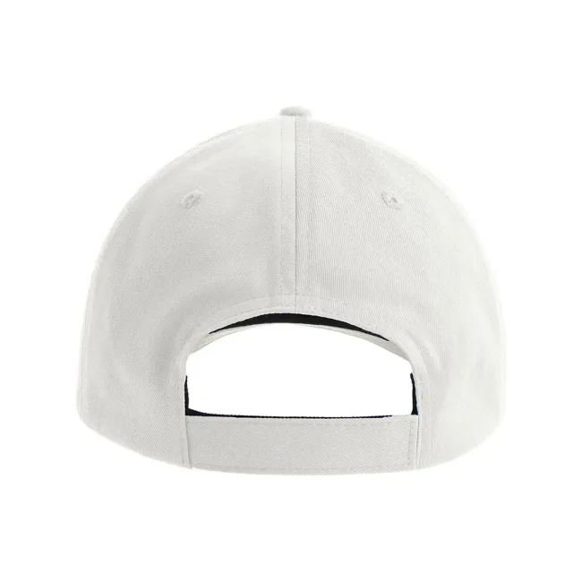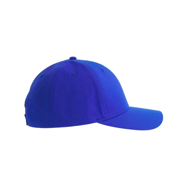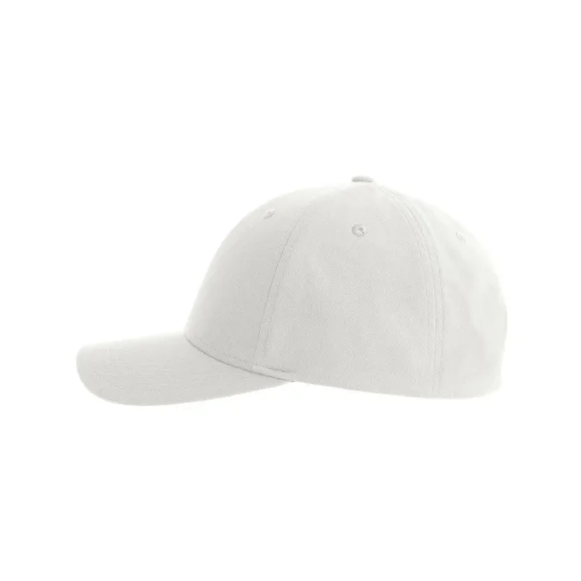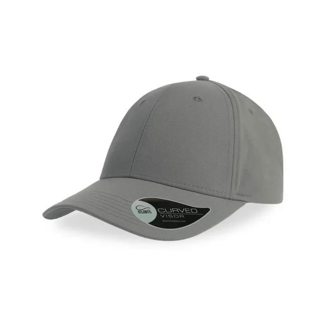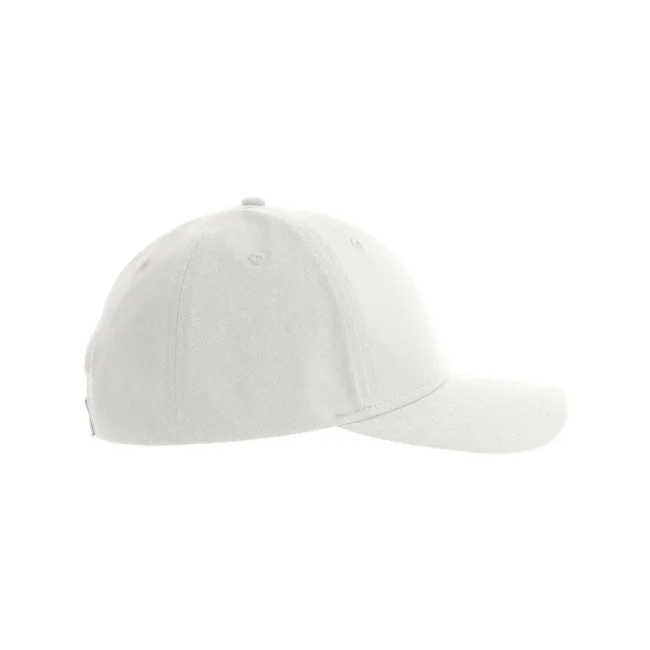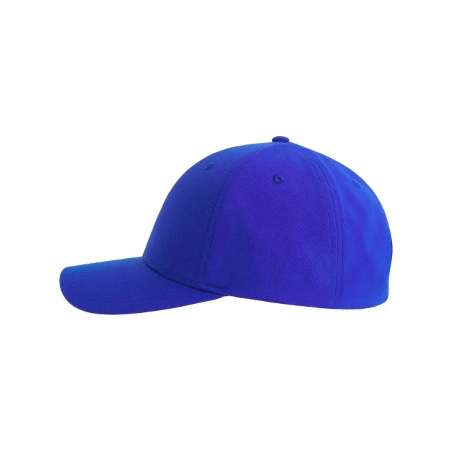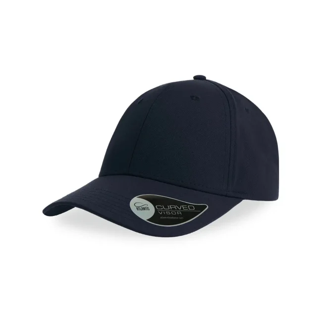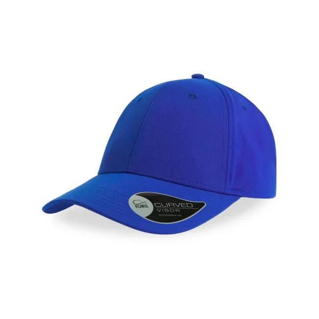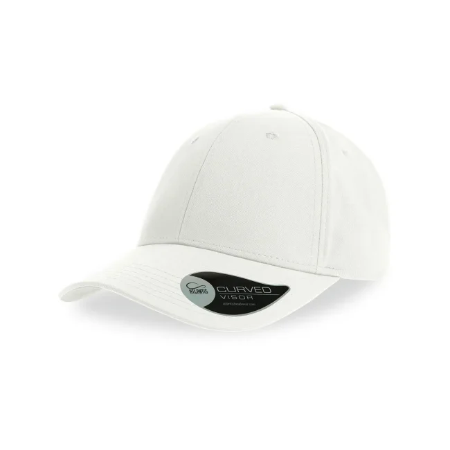 100% poliestere twill. Cappellino stile urban a 6 pannelli, poliestere traspirante elasticizzato effetto cotone, visiera precurvata con 4 cuciture, occhielli ricamati, etichetta removibile, chiusura in PVC.