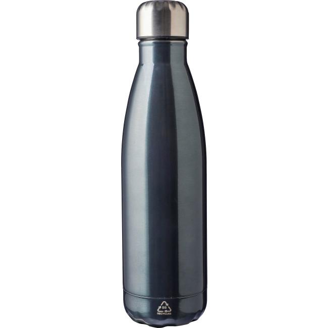 Borraccia in acciaio inox 304 riciclato, singola parete, tappo a vite, include il logo “acciaio inox riciclato” inciso sulla borraccia, confezionata singolarmente in una scatola in cartone avana, capacità 650 ml