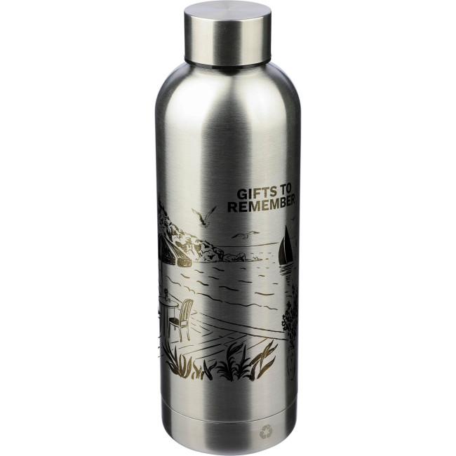 Borraccia in acciaio inox 304 riciclato, doppia parete, finitura opaca, confezionata singolarmente in una scatola in cartone avana, capacità 500 ml. Argento (032) non è una versione opaca; ha una finitura standard