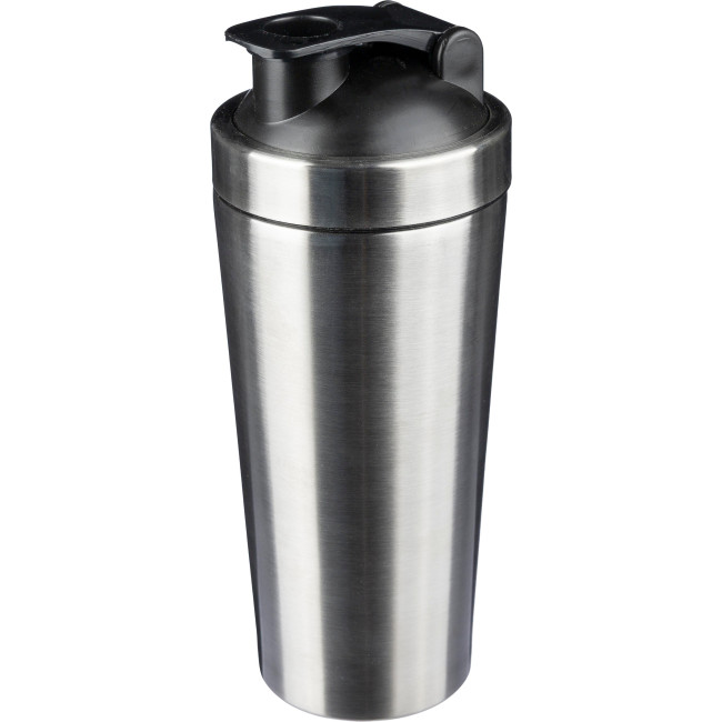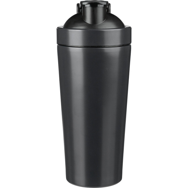 Borraccia sportiva in acciaio inox 304 riciclato a singola parete con tappo a vite in PP e sfera shaker in metallo per la miscelazione. La borraccia presenta il logo «acciaio inox riciclato» inciso, capacità 750 ml, confezionata singolarmente in una scatola in carta kraft.