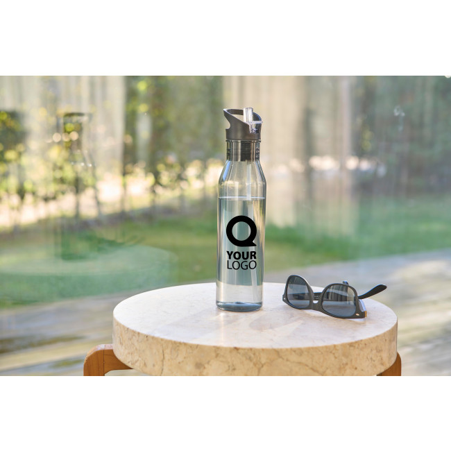 Borraccia in rPET, dotata di beccuccio pieghevole, cannuccia interna, presa in PP per il trasporto sulla parte superiore del tappo, confezionata in carta velina protettiva, capacità 730 ml