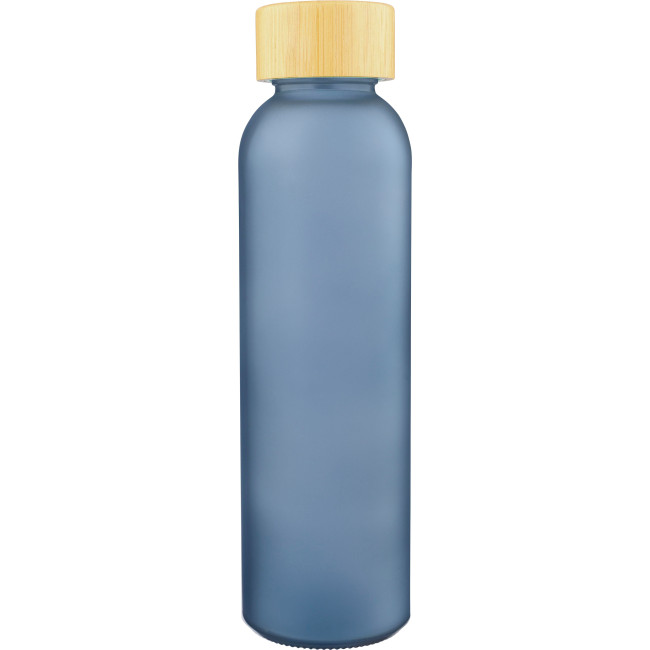 Borraccia in vetro per bevande con corpo rivestito effetto satinato e tappo a vite in bambù con parte interna in PP, realizzata in vetro sodico-calcico, adatta solo per bevande fredde, confezionata singolarmente in una scatola in cartone avana, capacità 500 ml.