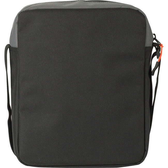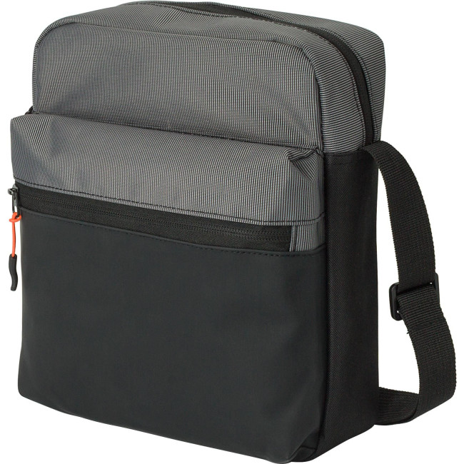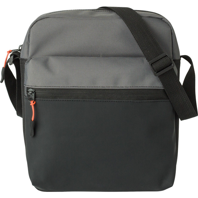 Borsa a tracolla in poliestere 500 D bicolore, tracolla regolabile con accenti di colore, piccola tasca frontale, ampio scomparto superiore e piccola tasca interna sul retro, tutte con chiusura lampo