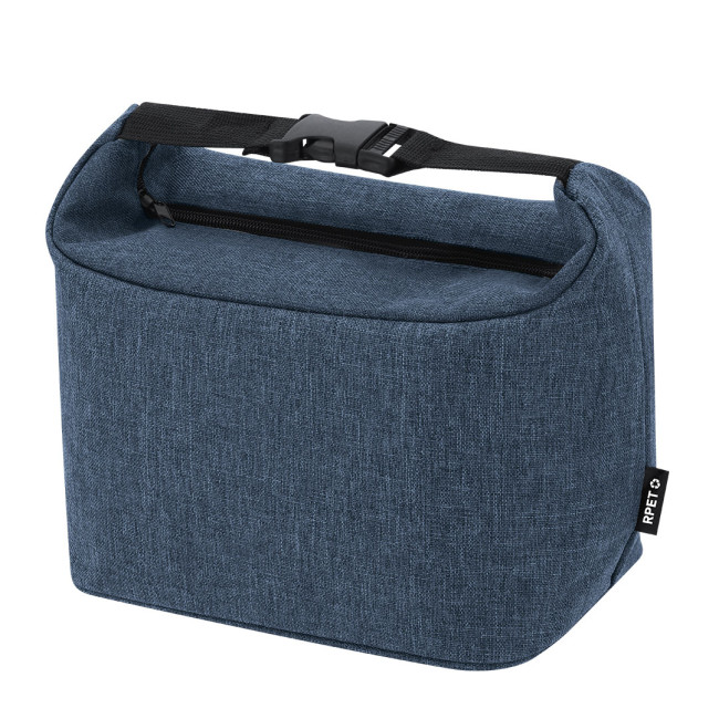 Borsa termica realizzata in RPET 600D, caratterizzata da un design originale con fibbie alle estremità per facilitare il trasporto. Il compartimento principale è termico, ideale per mantenere la temperatura dei cibi e delle bevande. Include etichetta RPET per sottolineare l'impegno verso la sostenibilità ambientale.