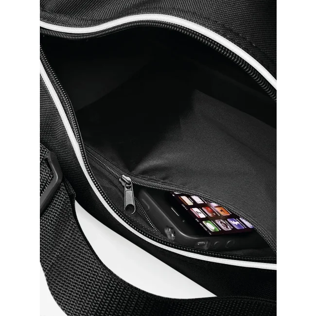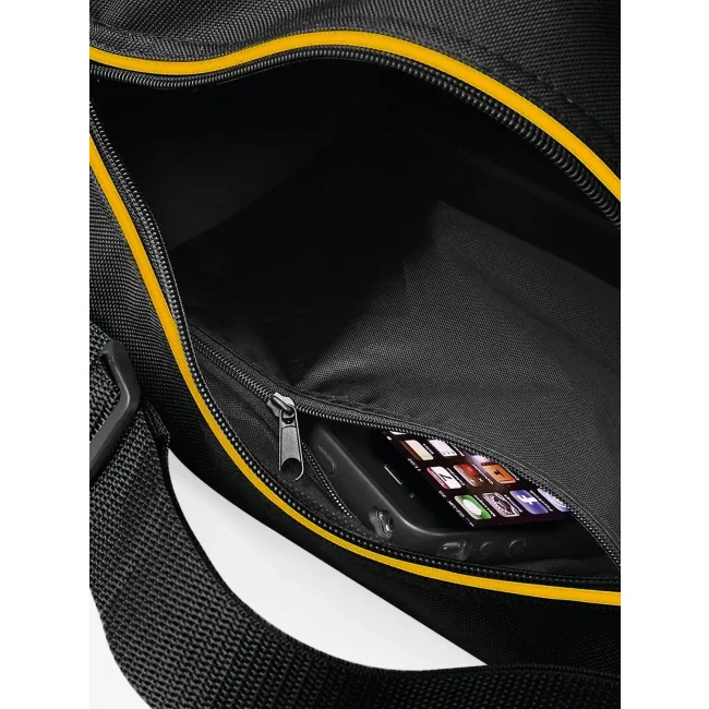 Borsa realizzata in poliestere 600D, dotata di doppio manico e lunga tracolla regolabile. Include una tasca frontale con zip e una piccola tasca retata interna per un facile accesso agli oggetti. Con dimensioni di 39 x 29 x 16 cm e una capacità di 15 litri, è pratica per l'uso quotidiano.