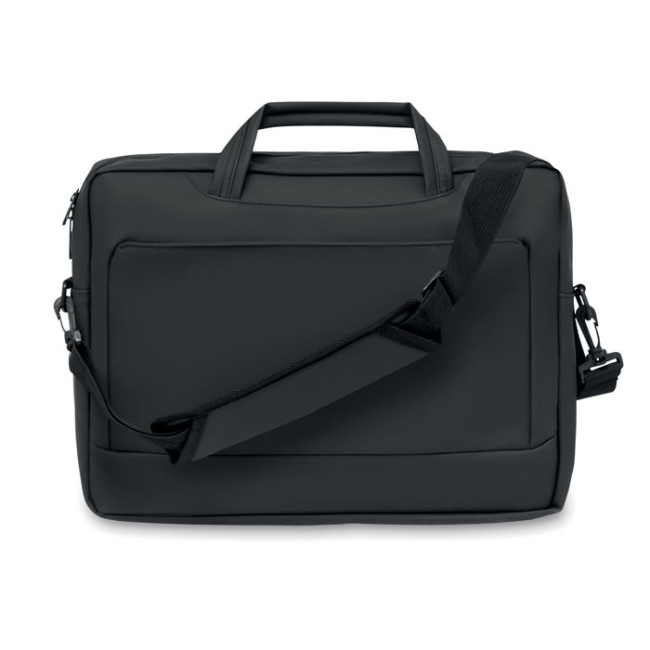 Borsa portadocumenti per laptop da 15 pollici realizzata in morbido PU, dotata di schienale imbottito. Include uno scomparto principale imbottito per il laptop e una tasca frontale con cerniera con diversi scomparti. Presenta due maniglie e una tracolla regolabile e staccabile con supporto per trolley sul retro.