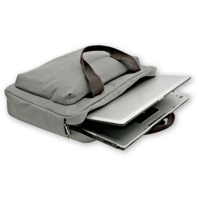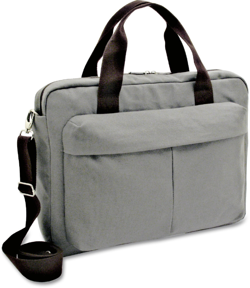 Borsa porta pc in canvas 450 gr. cotone doppi manici con tracolla, comada tasca porta pc, una tasca davanti e una ietro con chiusura a zip. confezione in polybag.