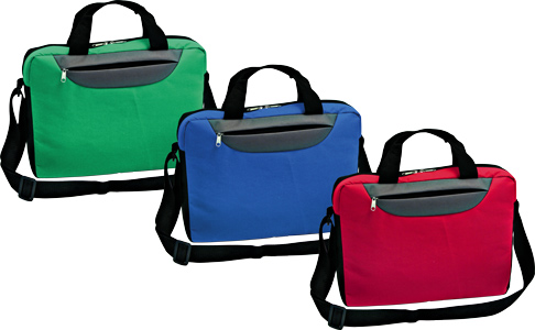Borsa portadocumenti 600D poliestere, interno in pvc, cerniera doppia, tasca davanti.
