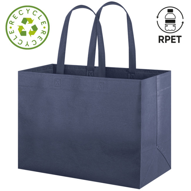 Borsa shopping ECOBAG ecologica, realizzata con il 50% di PET riciclato, presenta manici lunghi e rifiniture termosaldate. È riutilizzabile, riciclabile e lavabile in lavatrice, con una portata di 40 kg. Questa borsa è un'ottima alternativa alle buste di plastica usa e getta.