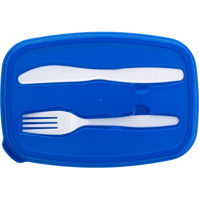 Borsa termica con Lunch box incorporato a due scomparti e coperchio in tinta, capacità 1.200 ml, kit posate per una persona, custodia in poliestere 600 D
