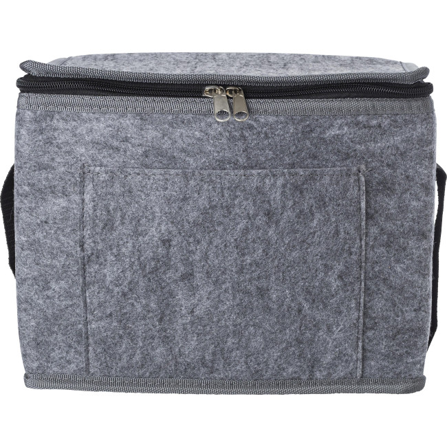 Borsa termica in feltro rPET, chiusura lampo, interno in lamina di alluminio, tasca frontale