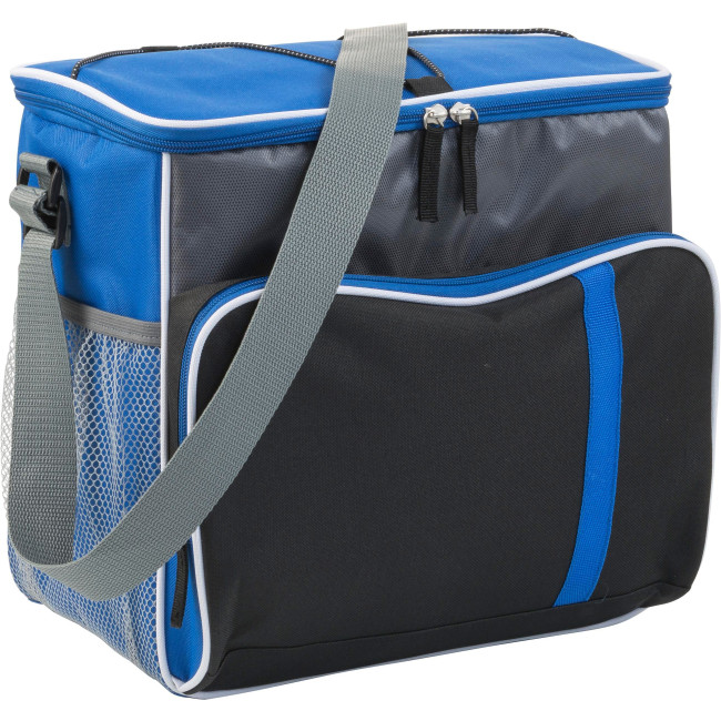 Borsa termica, scompato superiore e frontale con chiusura lampo, vani laterali con rete, cordino nella parte superiore, in poliestere 600 D