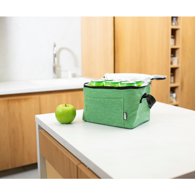 Borsa termica, rivestimento interno in PEVA, capacità 6 lattine da 330 ml, chiusura lampo, tasca frontale e tracolla regolabile, capacità 3 litri, in poliestere 600 D e rPET