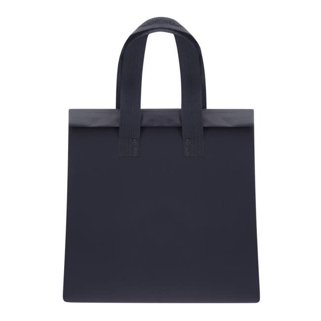 Borsa termica progettata in tessuto non tessuto laminato, dotata di scomparto principale con chiusura in velcro e interno isolante in alluminio. La finitura termosaldata e i manici rinforzati garantiscono robustezza e praticità.