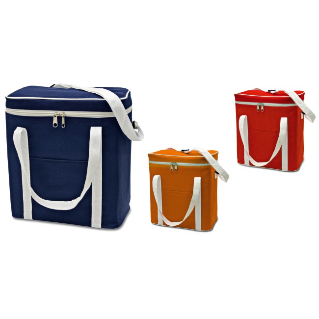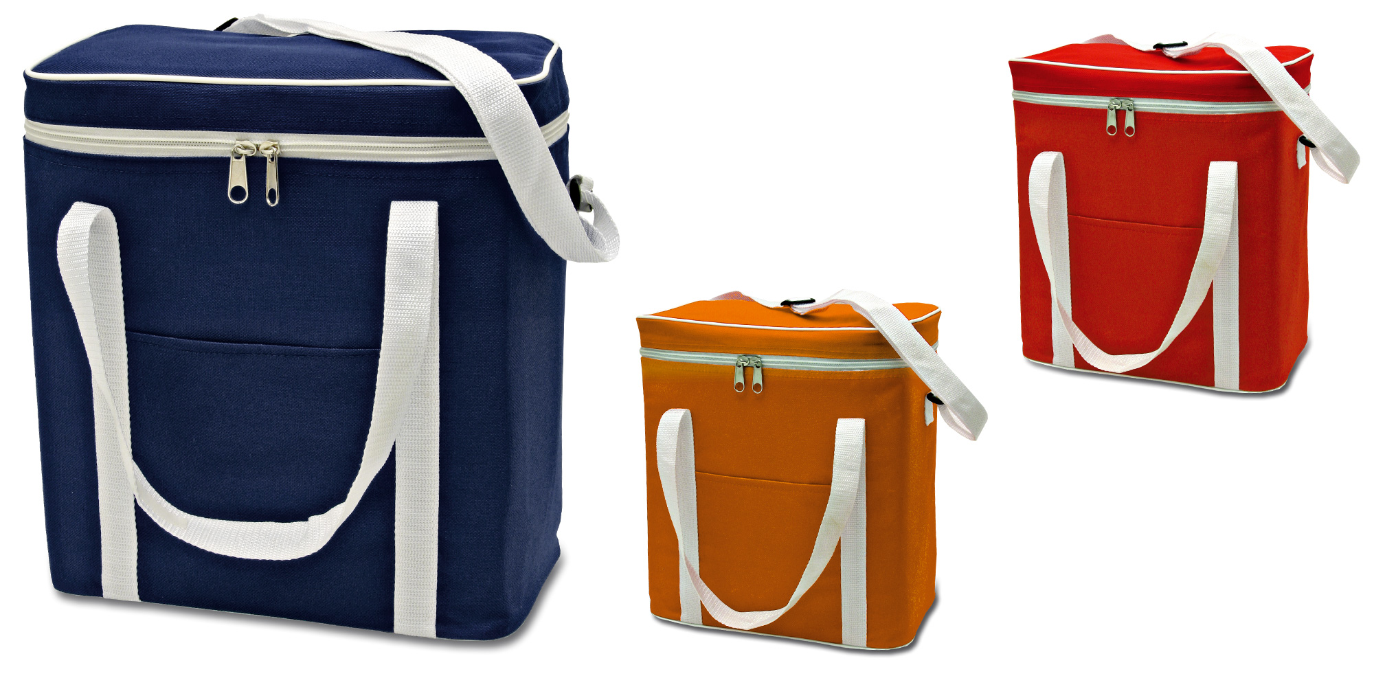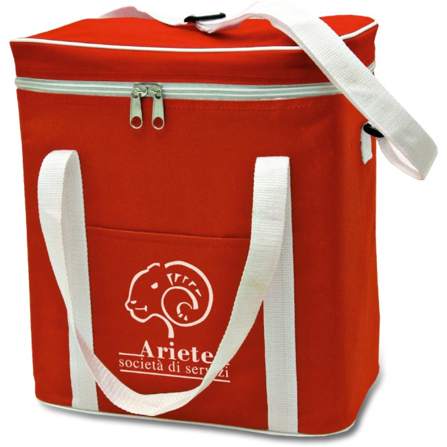 Borsa termica con tasca frontale. 2 Manici bianchi.