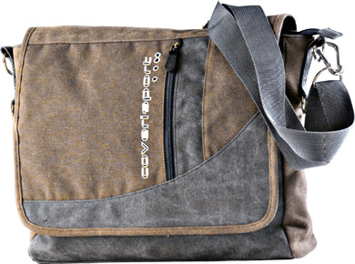 Borsa tracolla " coveri sport" in canvas grigio con inserti marrone 5 tasche logo ricamato