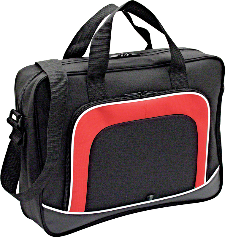 Borsa portacomputer in poliestere 600D, rifiniture colorate, con tracolla e doppi manici.
