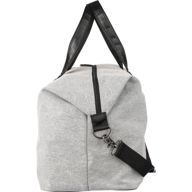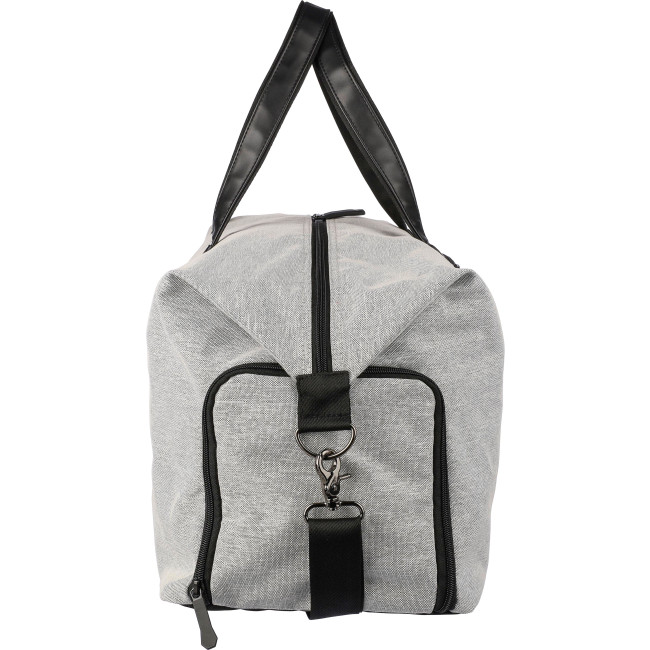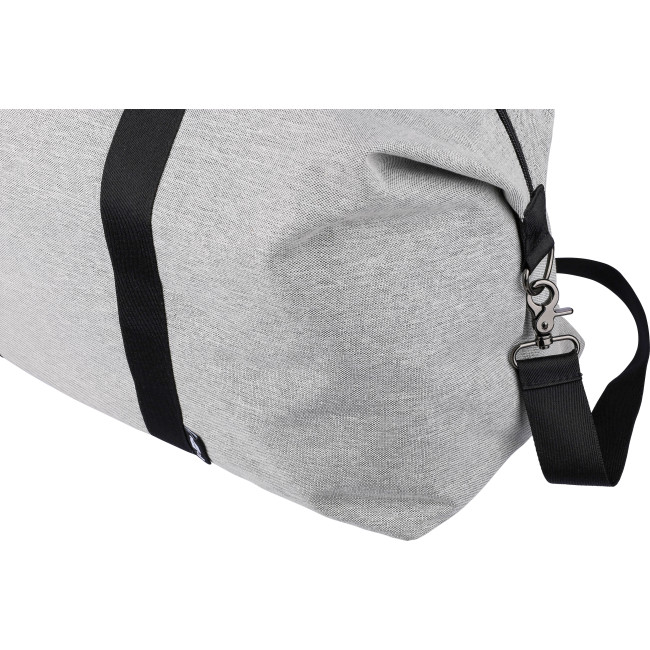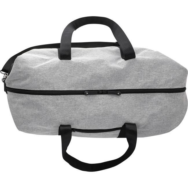 Borsone in poliestere 600 D riciclato, fodera in PU 150 D, dettagli in pelle PU, schiuma da 4 mm all'interno e pannello in PE da 1 mm. iInclude piccolo scomparto con chiusura lampo sul davanti, ampio scomparto con chiusura lampo, tasca per le scarpe sul lato, tracolla regolabile, due grandi maniglie per il trasporto, include etichetta rPET sul davanti