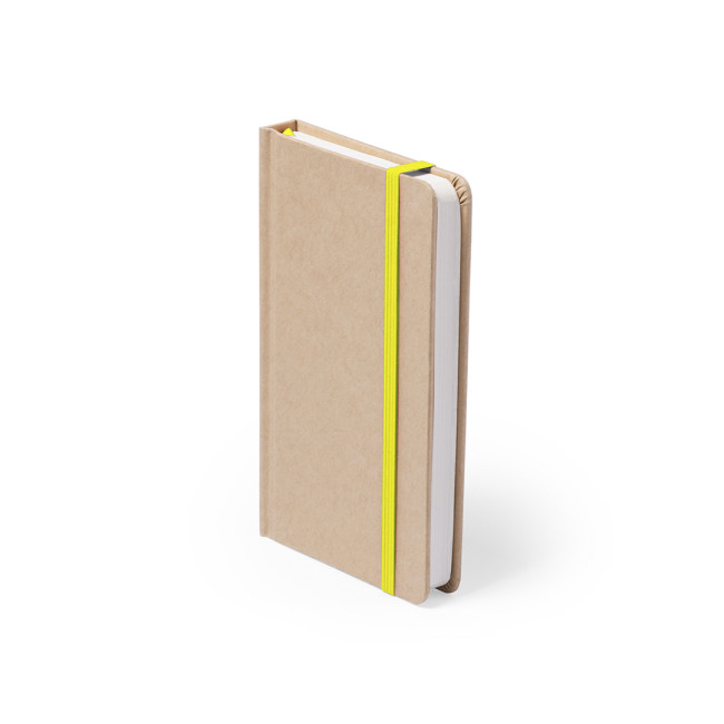Block notes con copertine soft-touch rifinite in resistente cartoncino naturale. Con 100 fogli lisci, rilegatura elastica e segnalibro in tessuto coordinato.