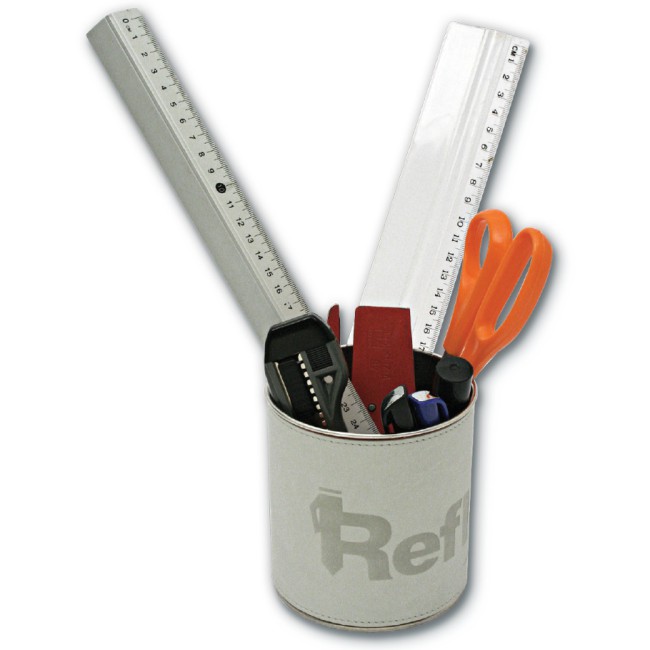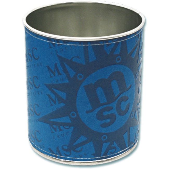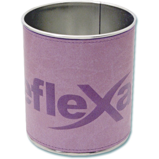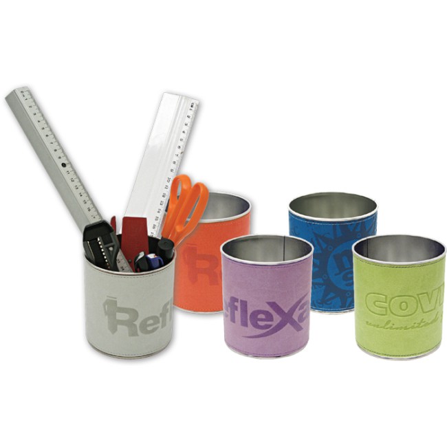 Bossolo portapenne in latta foderata di Vivella, disponibie in cinque combinazioni di colore.