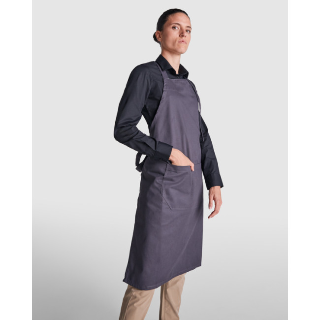 Grembiule lungo in twill di poliestere riciclato e cotone riciclato.· Spallacci regolabili.· Lacci laterali per l'allacciatura.· Due tasche anteriori.