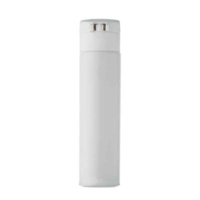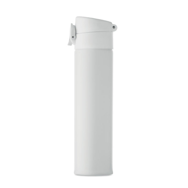 Borraccia a doppio strato in acciaio inox riciclato (90% acciaio inox riciclato e 10% acciaio inox) con chiusura di sicurezza sul coperchio e possibilità di apertura a pressione. Senza perdite. Capacità: 300 ml.