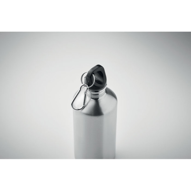 Bottiglia monostrato realizzata in acciaio inox riciclato, composta per il 90% da materiale riciclato. Ha una capacità di 500 ml e un moschettone per facilitarne il trasporto. La stampa a sublimazione è disponibile solo sull'articolo bianco. Non presenta perdite, ma si può verificare il trasferimento di calore.