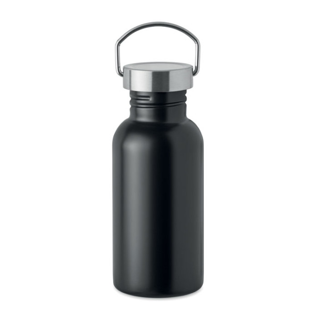 Bottiglia a strato singolo in acciaio inox riciclato, con una composizione del 90% di materiale riciclato. Capacità di 500 ml, è progettata per evitare perdite e dotata di un pratico manico. Non è personalizzabile.
